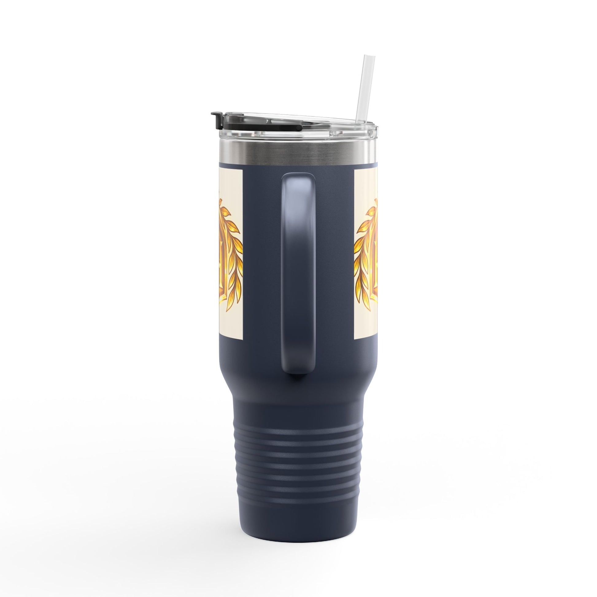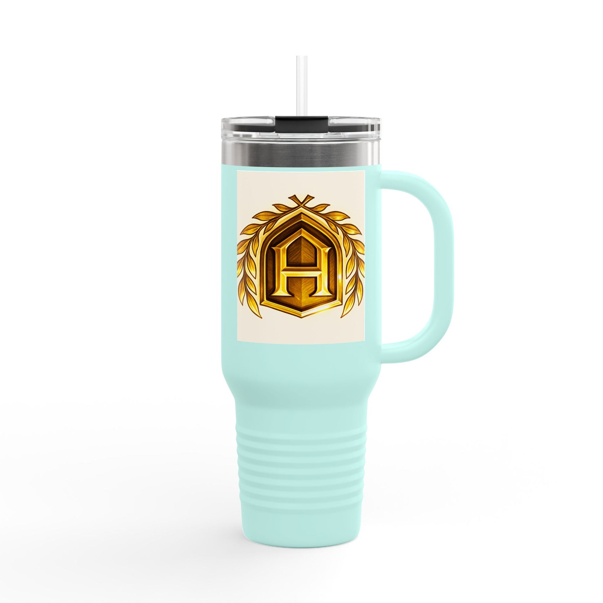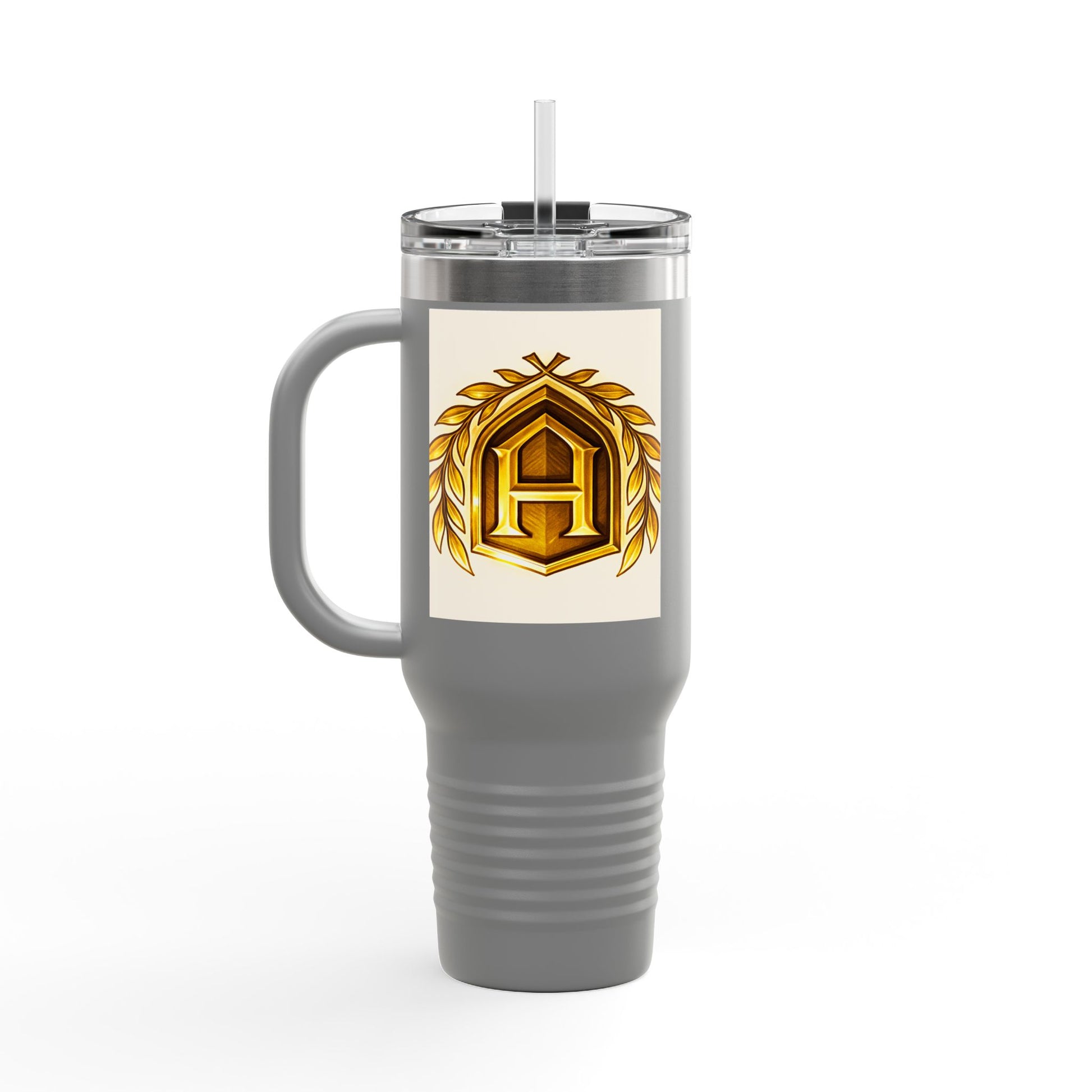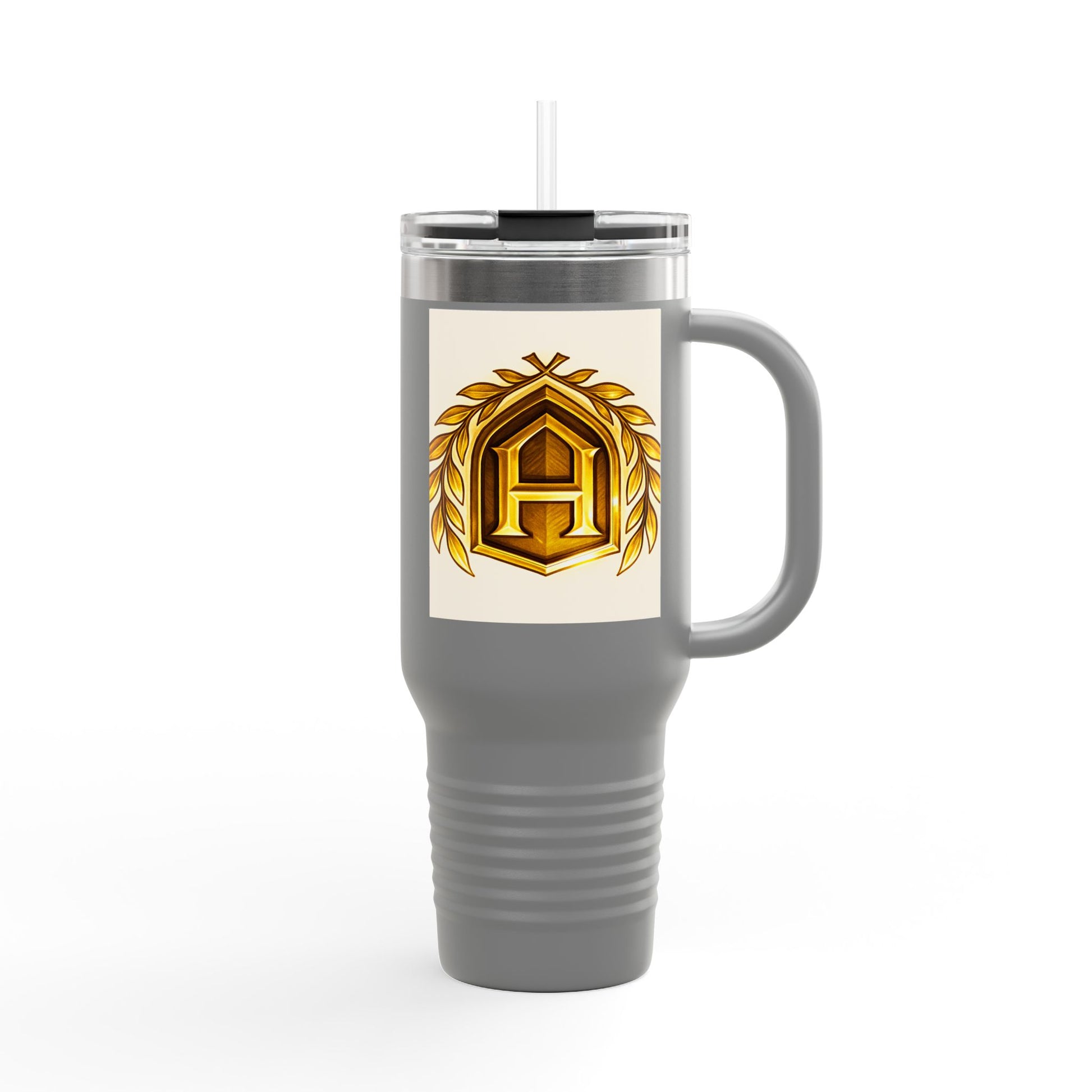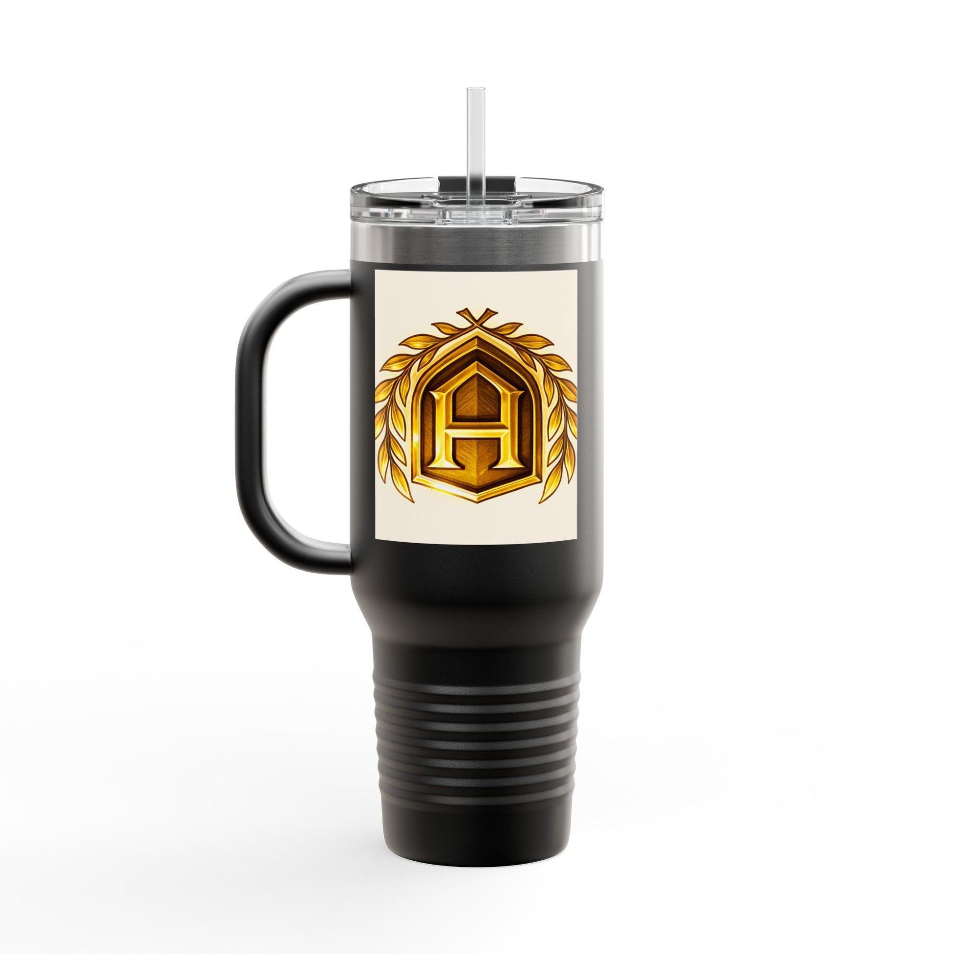 Insulated Travel Mug, 40oz - Golden Emblem Design, Ideal for Gamers, Personalized Gift for Holidays, Work and Adventure