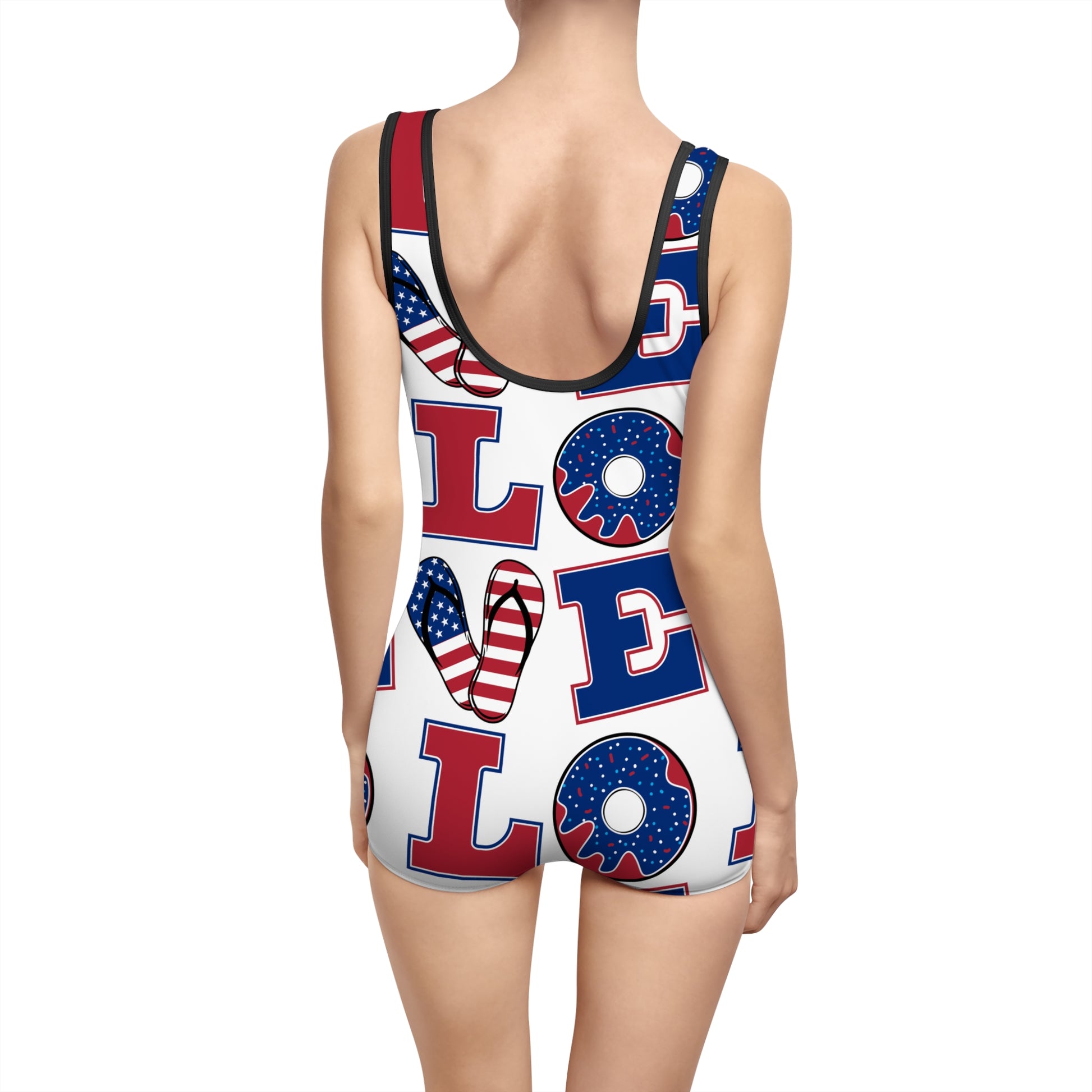 This Women Vintage Swimsuit with Patriotic Love Design exudes a retro and patriotic vibe, perfect for beach days, pool parties, and Fourth of July celebrations. The boyshort bottoms provide comfort and flexibility for various activities. Made with high-quality materials, this swimsuit boasts vibrant colors that won't fade in water or sun. Ideal for women who love vintage styles and want to make a statement at the beach or by the pool.